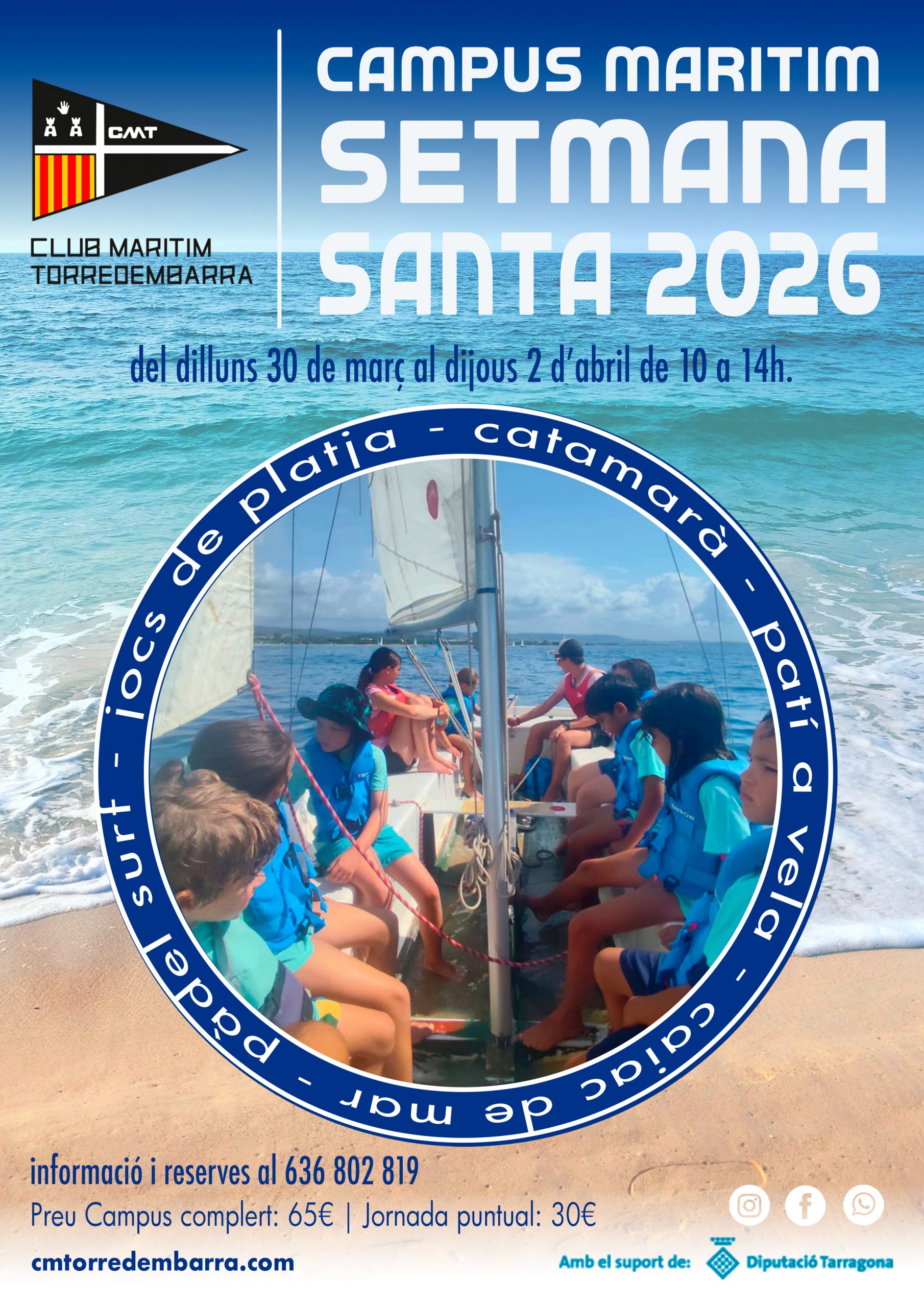 Del 30 de marzo, lunes, al 2 de abril, jueves, podéis disfrutar del campus marítimo de Semana Santa que organiza el Club Marítim Torredembarra.